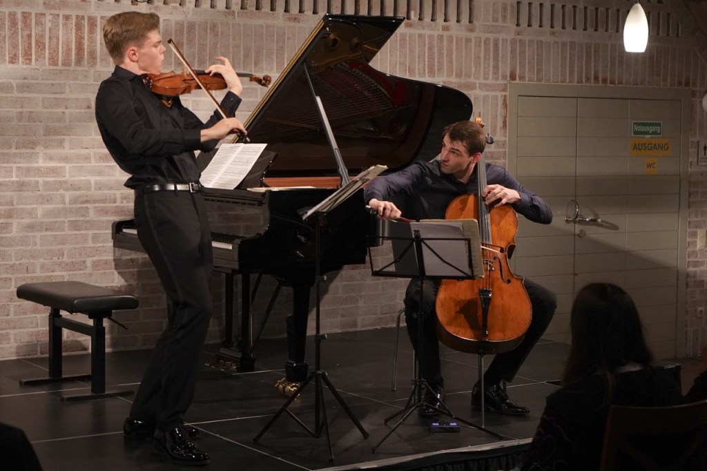 Denn die Pianistin Margarita Höhenrieder, die als Star des Abends fungierte, hatte zwei junge Meister in ihrer Gesellschaft, die mit ihr und in Duo-Kombinationen mit mitreißendem Elan und kaum zu bremsender Energie konzertierten. Der bereits von anderen Terminen des Festivals Stars And Rising Stars bekannte Münchner Geiger Tassilo Probst zeigte sich von einer Romanze von Clara Schumann bis hin zur wild expressiven „Passacaglia“ von Johan Halvorsen stilsicher elegant und faszinierend präsent im Wechselspiel der musikalischen Emotionen. Der Cellist Friedrich Thiele legte immense Kraft in eine Mozart-Adaption des jungen Beethoven und in die F-Dur-Sonate von Johannes Brahms. Im Team rehabilitierten sie mit souveräner Beiläufigkeit das erste Klaviertrio von Clara Schumann für den Kreis der großen Kunst, mit dem die Komponistin einst haderte. Vor allem aber füllten Probst und Thiele mit zwei zusätzlich ins Programm genommenen Sätzen der Ravel-Sonate für Geige und Cello die Konzertdachkammer des Schlosses mit einem Feuer der Expressivität. „Wir haben sie aus Spaß bei der Probe getestet und stellten fest, dass wir sie unbedingt spielen wollen“, meinte Tassilo Probst in der Ansage. Ein guter, verzückender Entschluss!