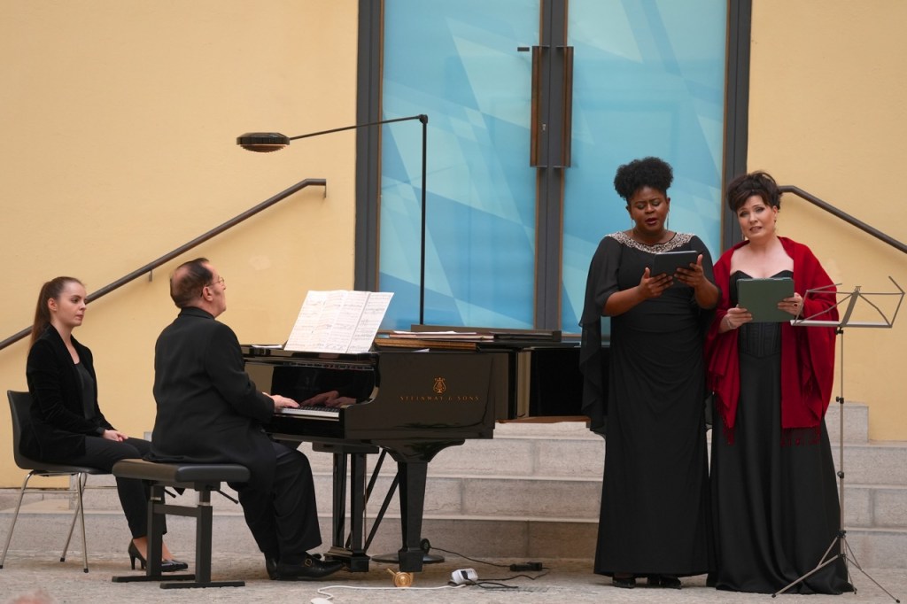 Die Erfinder des iPads haben bestimmt nicht erwartet, dass ihr fesches Gerät eines Tages zur Standardausstattung klassischer Musiker:innen gehören würde. Beim Finale des Stars and Rising Stars Festivals sah es aber manchmal so aus, als würde es sogar angebetet. Denn auf dem Tablet lassen sich Noten praktisch präsentieren, so dass man keine Mappen mehr braucht, mit fliegenden Blättern und der einen Vorlage, die man dann doch wieder irgendwo liegen gelassen hat. Marina Rebeka und Natalie Lewis jedenfalls sangen ihr Duett aus Gioachino Rossinis „Messe solennelle“ mit aller Hingabe und das 19.Jahrhundert bekam seine Hilfe von der Technik der Gegenwart.